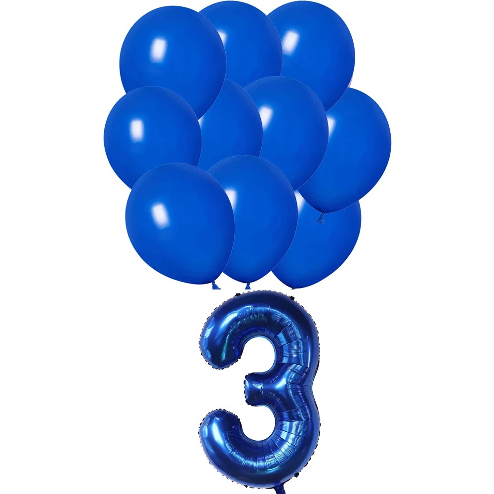 • Kombinácia tmavo modrých balónov a fóliového balónka číslo 3