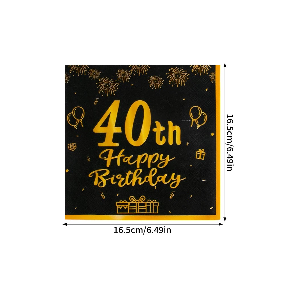 20 ks Papierové obrúsky Narodeninové obrúsky 40. narodeniny Čierno-zlatý dizajn Dekoratívne obrúsky na narodeninovú oslavu