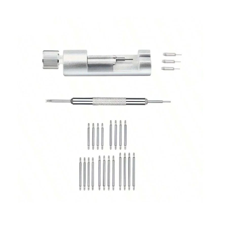 Táto 25dielna sada nástrojov na hodinky je ideálnym riešením pre každého, kto potrebuje jednoducho a rýchlo vymeniť remienok alebo vykonať drobné opravy. Obsahuje profesionálny odstraňovač remienkov, univerzálne nástroje a rôzne veľkosti kolíkov, ktoré zabezpečia kompatibilitu s väčšinou hodín. Vďaka kvalitnej konštrukcii je sada vhodná ako pre domáce použitie, tak aj pre profesionálnych hodinárov. Presné nástroje umožňujú jednoduchú manipuláciu, šetria čas a minimalizujú riziko poškodenia hodín. Praktická sada uľahčí výmenu remienkov, prispôsobenie veľkosti pásku a celkovú údržbu.
