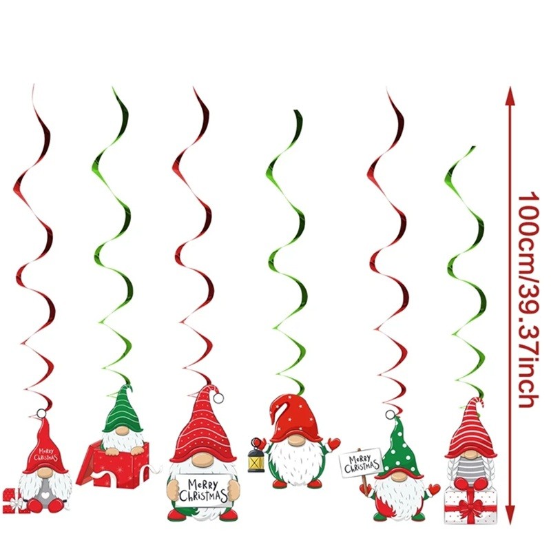 6 ks Vianočné spirálové prívesky 100 cm s motívom vianočných trpaslíkov Závesné dekorácie na strop a okná Sviatočné ozdobné spirály do interiéru