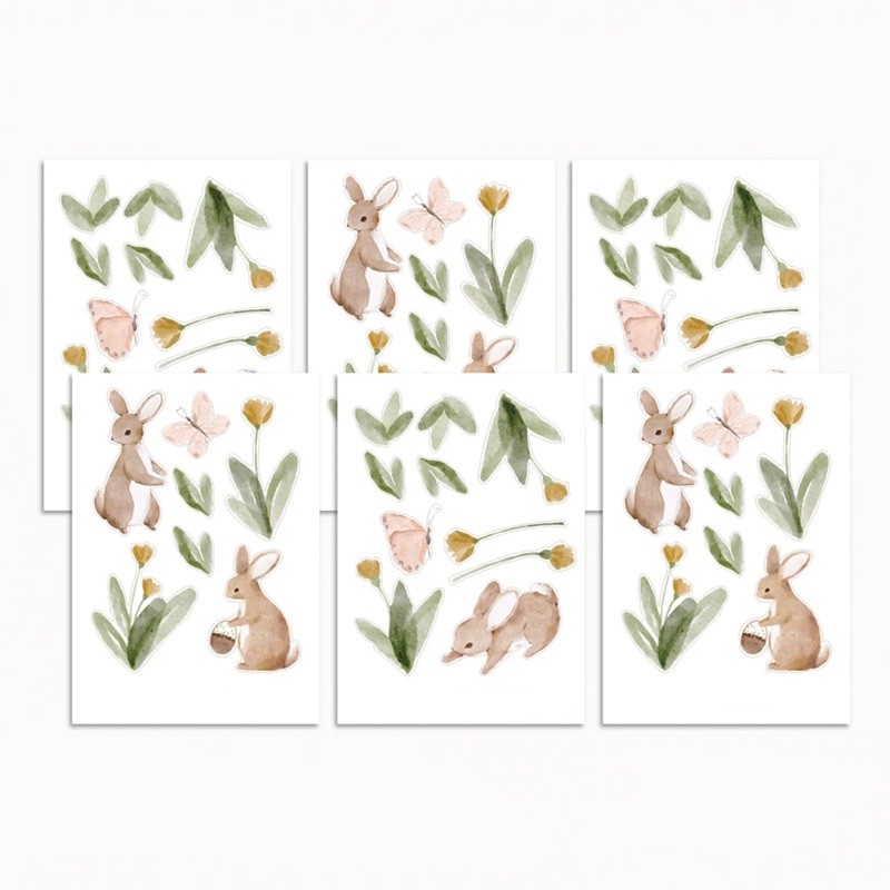 Sada 6 listov 14,8 × 21 cm s roztomilými zajačikmi a kvietkami z PVC. Ideálne na tvorenie, dekoráciu diáru aj detskú izbu. Celý popis