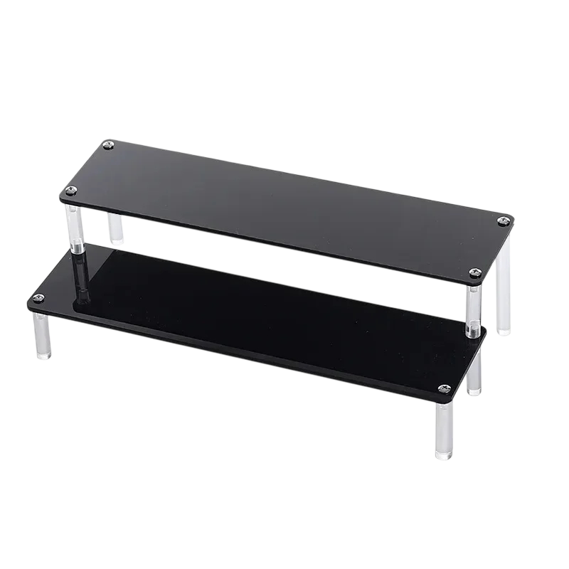 Dvojpodlažný akrilový stojan je praktickým riešením pre organizáciu a vystavenie drobných predmetov v domácnosti aj pracovnom prostredí. Vďaka rozdeleniu do dvoch úrovní umožňuje prehľadné usporiadanie a jednoduchú orientáciu medzi uloženými vecami. Vhodný je pre figúrky, parfémy, šperky aj ďalšie zberateľské predmety.