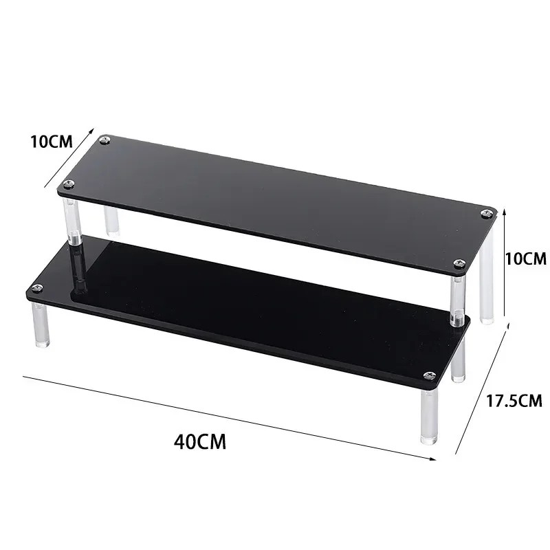 Akrilový stojan 2 úrovne 40 × 17,5 × 10 × 10 cm čierny organizér na figúrky parfémy šperky police pre vystavenie zberateľských predmetov