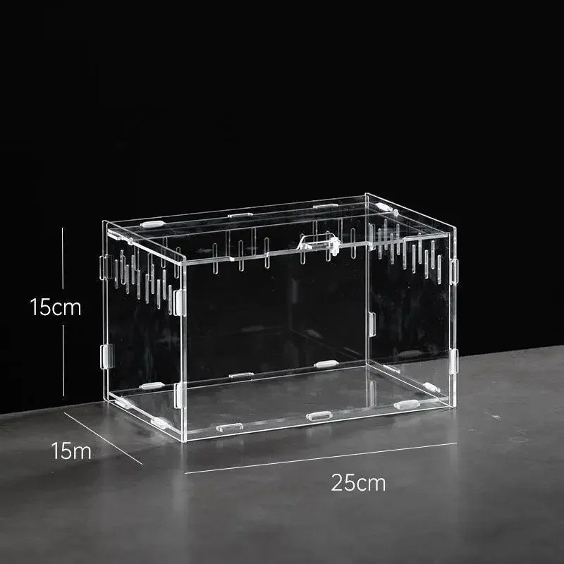 Toto akrylové terárium je ideálne pre plazy, tarantuly, pavúky, škorpióny a ďalšie drobné terarijné zvieratá. Vďaka rozmerom 25 x 15 x 15 cm poskytuje dostatok priestoru pre pohyb a aktivitu, čo je ideálne pre väčšie mláďatá plazov alebo pre malé druhy. Vyrobené z vysoko kvalitného akrylu, ktoré zaisťuje maximálnu priesvitnosť pre jednoduché pozorovanie zvierat bez narušenia ich prirodzeného správania.
