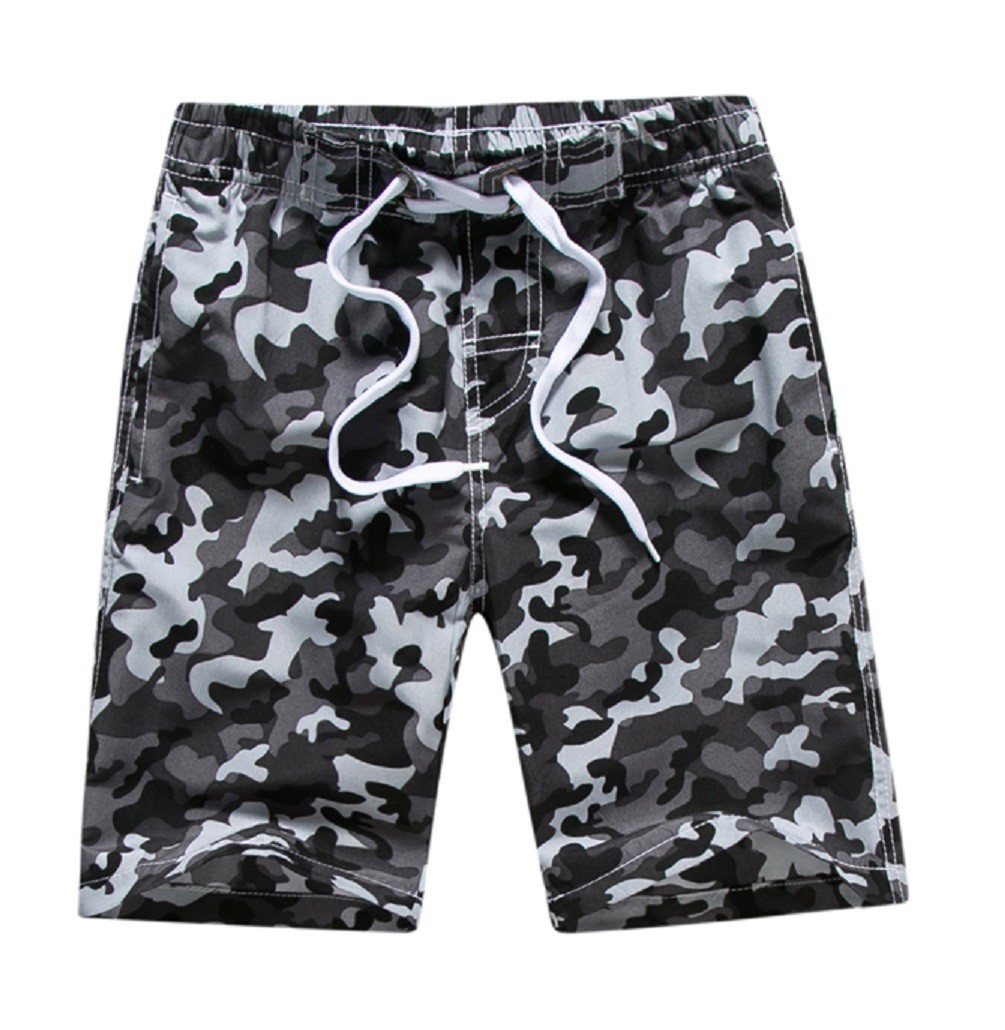 Krásne plážové kraťasy s maskáčovým vzorom.