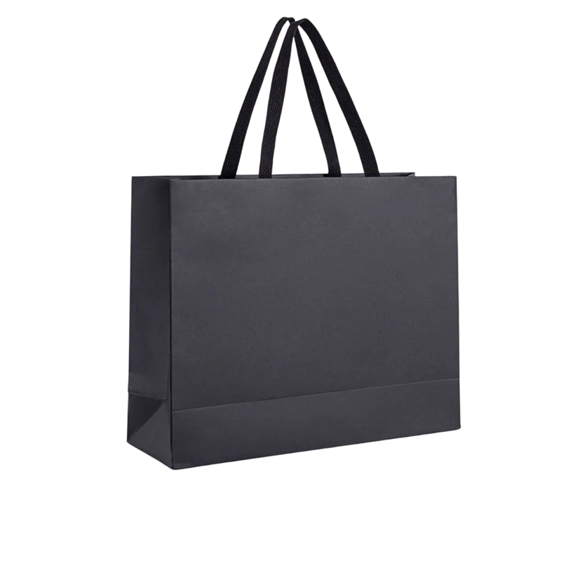 Táto veľká čierna papierová darčeková taška je ideálna na balenie väčších darčekov, oblečenia, módnych doplnkov či obchodných prezentácií. Vyrobená z pevného kartónového papiera s vysokou gramážou, ktorý zabezpečuje stabilitu, odolnosť a luxusný vzhľad. Vďaka rozmerom 40 x 32 x 13 cm ponúka dostatok priestoru aj pre väčšie predmety, pričom si zachováva elegantný tvar a pevnosť. Jej matný čierny povrch dodáva baleniu profesionálny a sofistikovaný vzhľad, ideálny pre osobné aj firemné použitie.