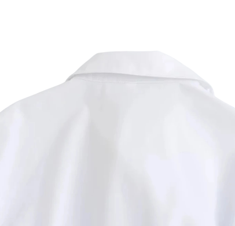Táto dámska elegantná košela s límcom a mašľou okolo pása je dokonalou kombináciou štýlu a pohodlia. Vďaka voľnému strihu v štýle kimona pôsobí vzdušne a elegantne, zatiaľ čo mašľa v páse krásne zvýrazní ženskú siluetu. Blúzka je vyrobená z ľahkého a kvalitného polyesteru, ktorý je príjemný na dotyk, ľahko sa perie a nemačká sa. Zapínanie na gombíky dodáva blúzke klasický vzhľad, ktorý sa hodí pre každú príležitosť – od kancelárie po voľnočasové aktivity. Dostupná je v niekoľkých jednofarebných variantoch, ktoré ľahko skombinujete s nohavicami, sukňou či džínsami.