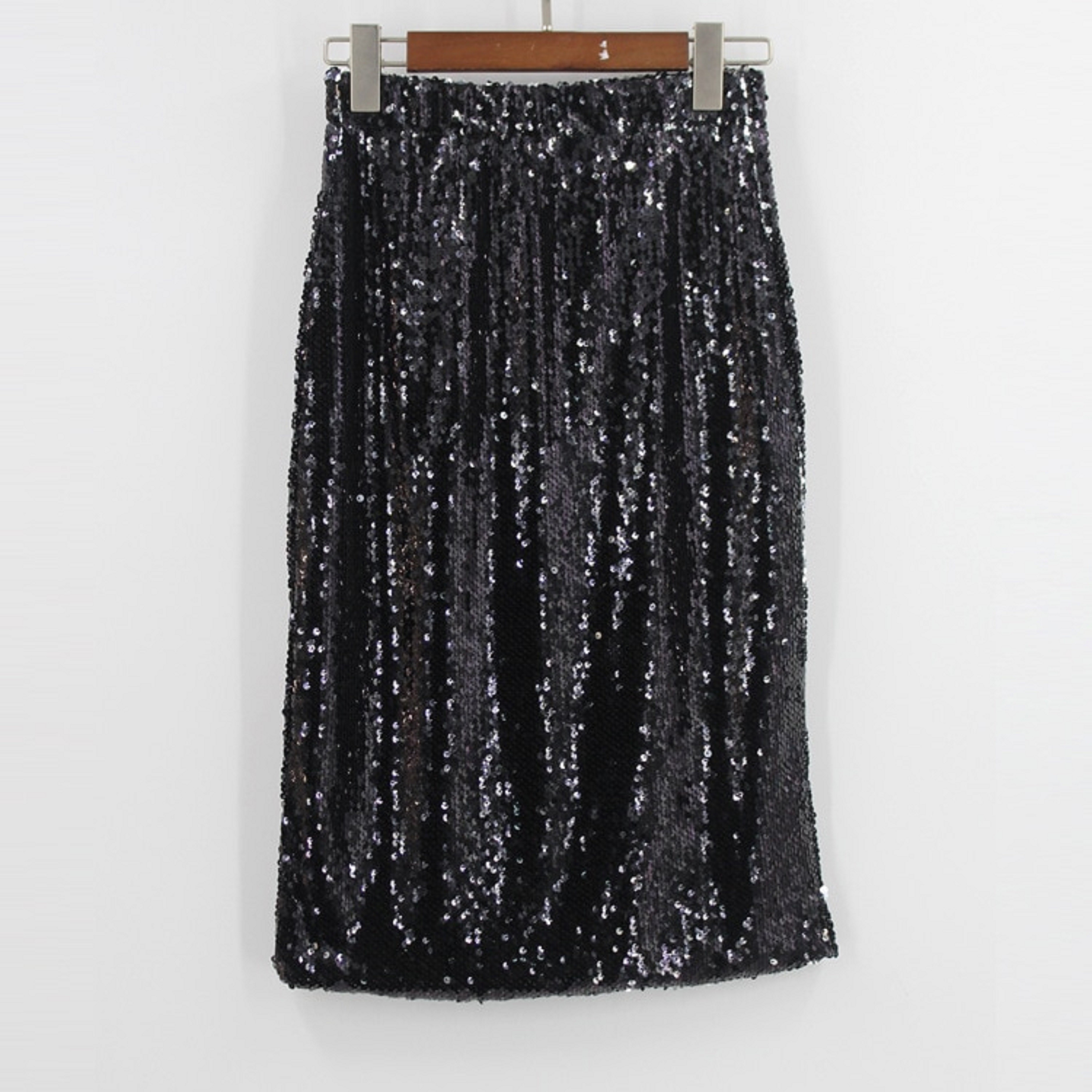 Dámska flitrové sukňa s vysokým pásom