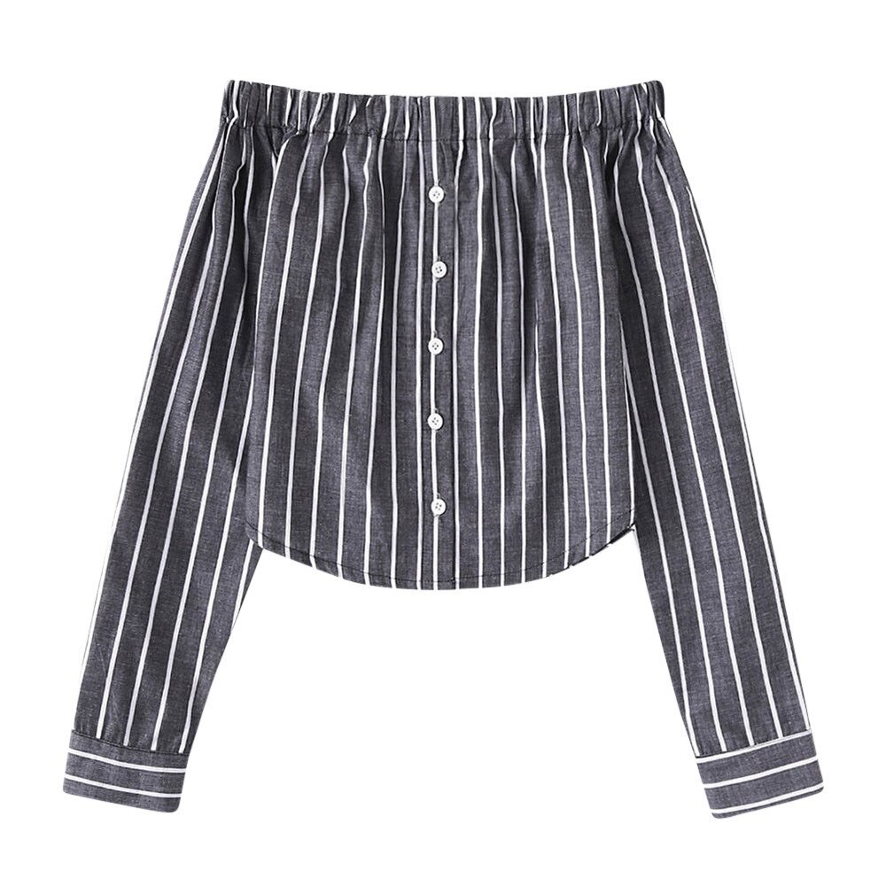 Dámska pruhovaná košeľa s odhalenými ramenami