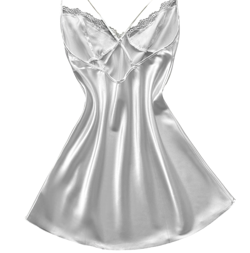 Luxusná dámska saténová nočná košela z ľahkého polyesteru s čipkovým lemom a výstrihom do V spája eleganciu, pohodlie a ženský pôvab. Celý popis