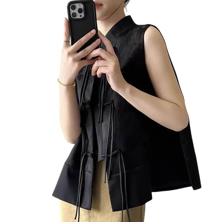 Úvodná strana Úvodná strana Oblečenie a doplnky Dámske Dámske bundy a kabáty Dámske vesty Dámska žakárová vesta bez rukávov s límcom a zapínaním na gombíky Elegantná jednobarevná vesta z polyesteru a bavlny na každodenné nosenie