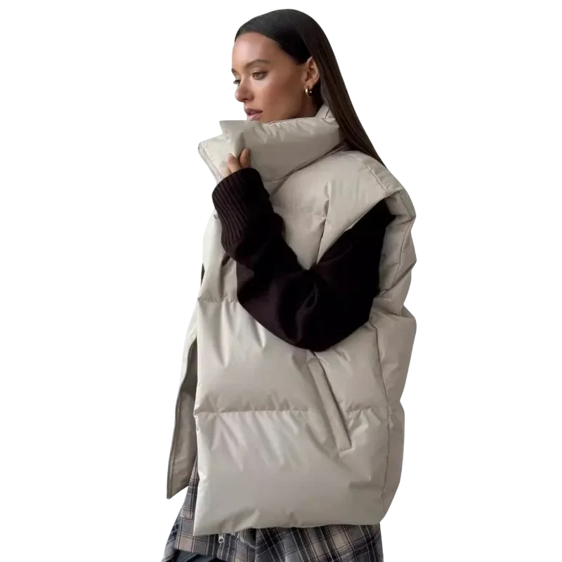 • Elegantná dámska zimná vesta s moderným dizajnom a hrejivým rolákom
