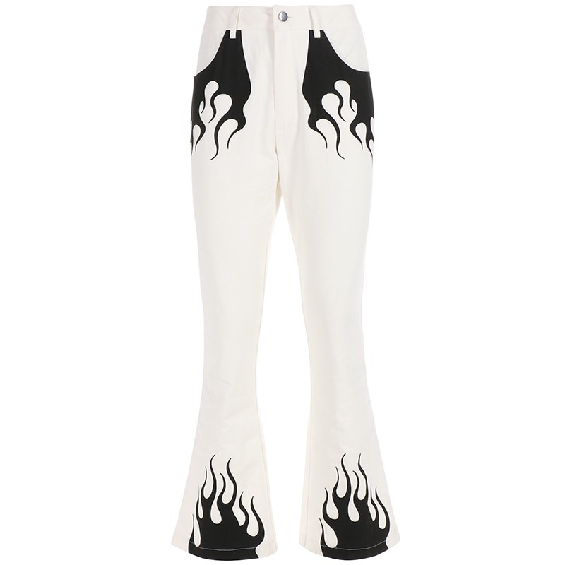 Dámske biele nohavice s plameňmi