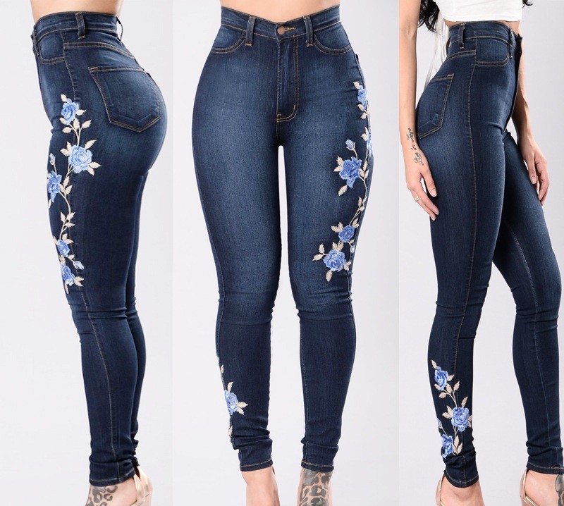 Krásne dámske džíny s motívom kvetín po stranách.