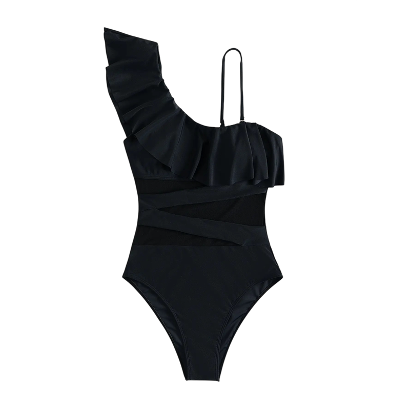Štýlové dámske jednodielne plavky v jednobarevnom prevedení prinášajú jemnú eleganciu a ženský pôvab. Polopriehľadné detaily dodávajú modelu ľahkosť a moderný vzhľad, zatiaľ čo dekoratívne volánky podčiarkujú romantický štýl. Výstrih do O pôsobí prirodzene a lichotí rôznym typom postavy. Plavky sú navrhnuté tak, aby zvýraznili siluetu a zároveň poskytli maximálny komfort pri nosení. Skvele sa hodia na pláž, dovolenku aj relax pri bazéne.