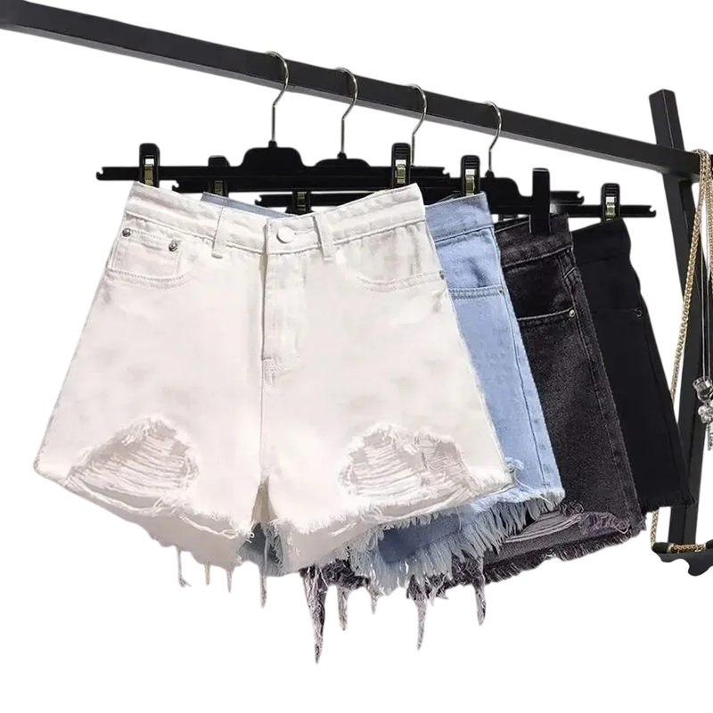 Štýlové roztrhané džínové šortky s vysokým pásom a kapsami z bavlny a terylenu ideálne na leto aj každodenný outfit. Celý popis