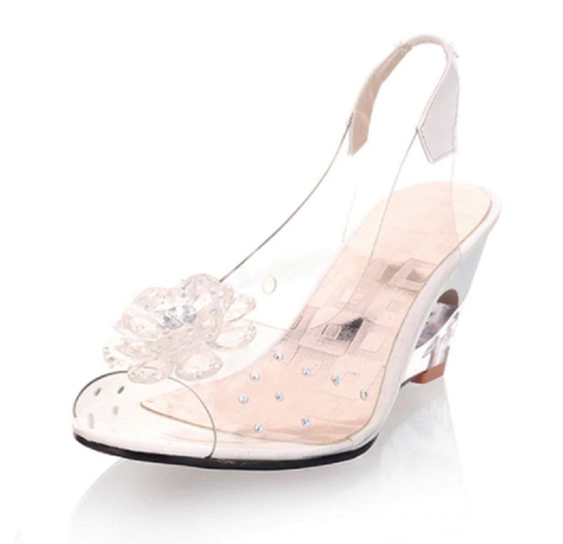 Dámske priehľadné lodičky s kvetinou