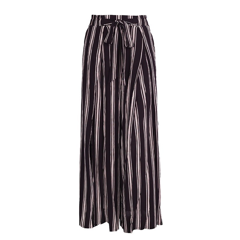 Dámske pruhované nohavice s rozparkom