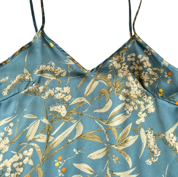 Toto elegantné dámske pyžamo s kvetinovým motívom spája pohodlie, sviežosť a ženský štýl v jednom. Vyrobené z vysoko kvalitného ľahkého polyesteru, zaisťuje mäkký dotyk, priedušnosť a príjemný chladivý efekt počas noci. Vďaka ľahkému materiálu a vzdušnému strihu je tento komplet ideálnou voľbou pre teplé letné obdobie, ale aj pre celoročný domáci relax.