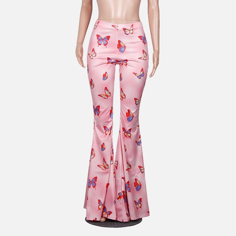 Dámske ružové nohavice s motýľmi