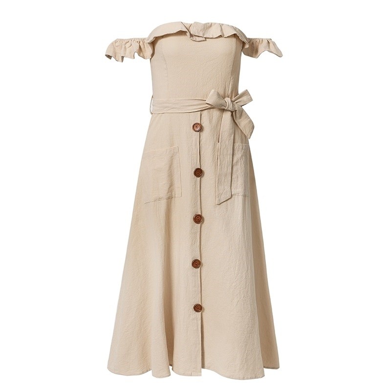 Dámske šaty so spadnutými volánikovým ramienkami.
