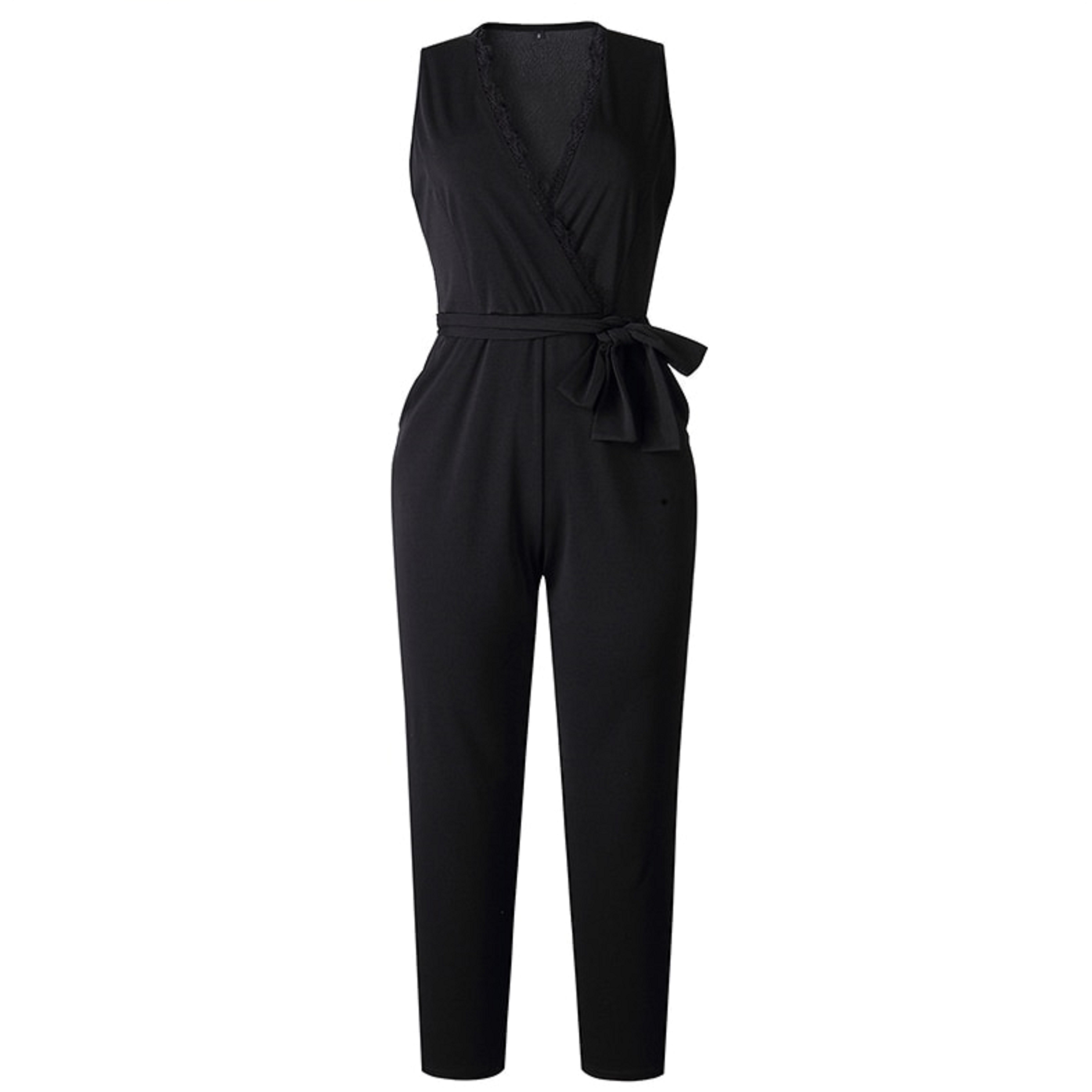 Dámsky čierny overal s viazaním v páse