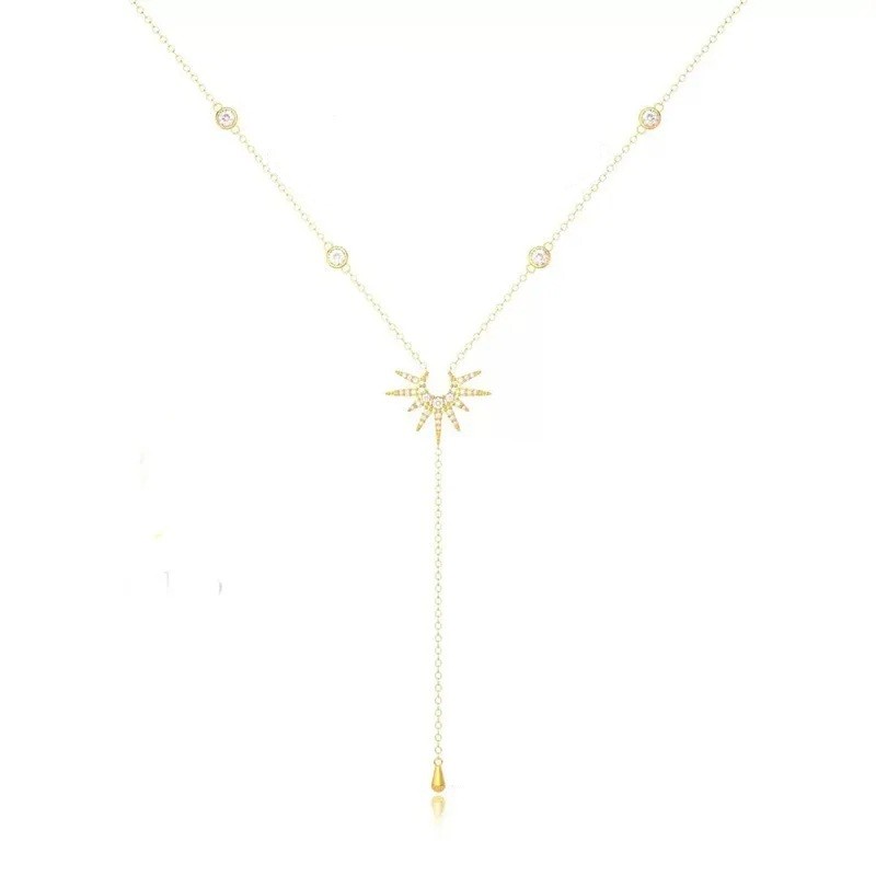 Dámsky dlhý retiazkový náhrdelník Kapkový prívesok Zirkón Slnko Jednoduchý kovový choker Náhrdelník s visiacej retiazkou
