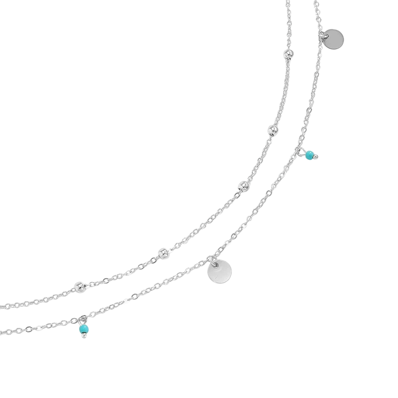 Štýlový dvojvrstvový reťazec v elegantnom striebornom prevedení zvýrazňuje pás a je ideálny doplnok pre leto, festivaly a plážové outfity. Celý popis
