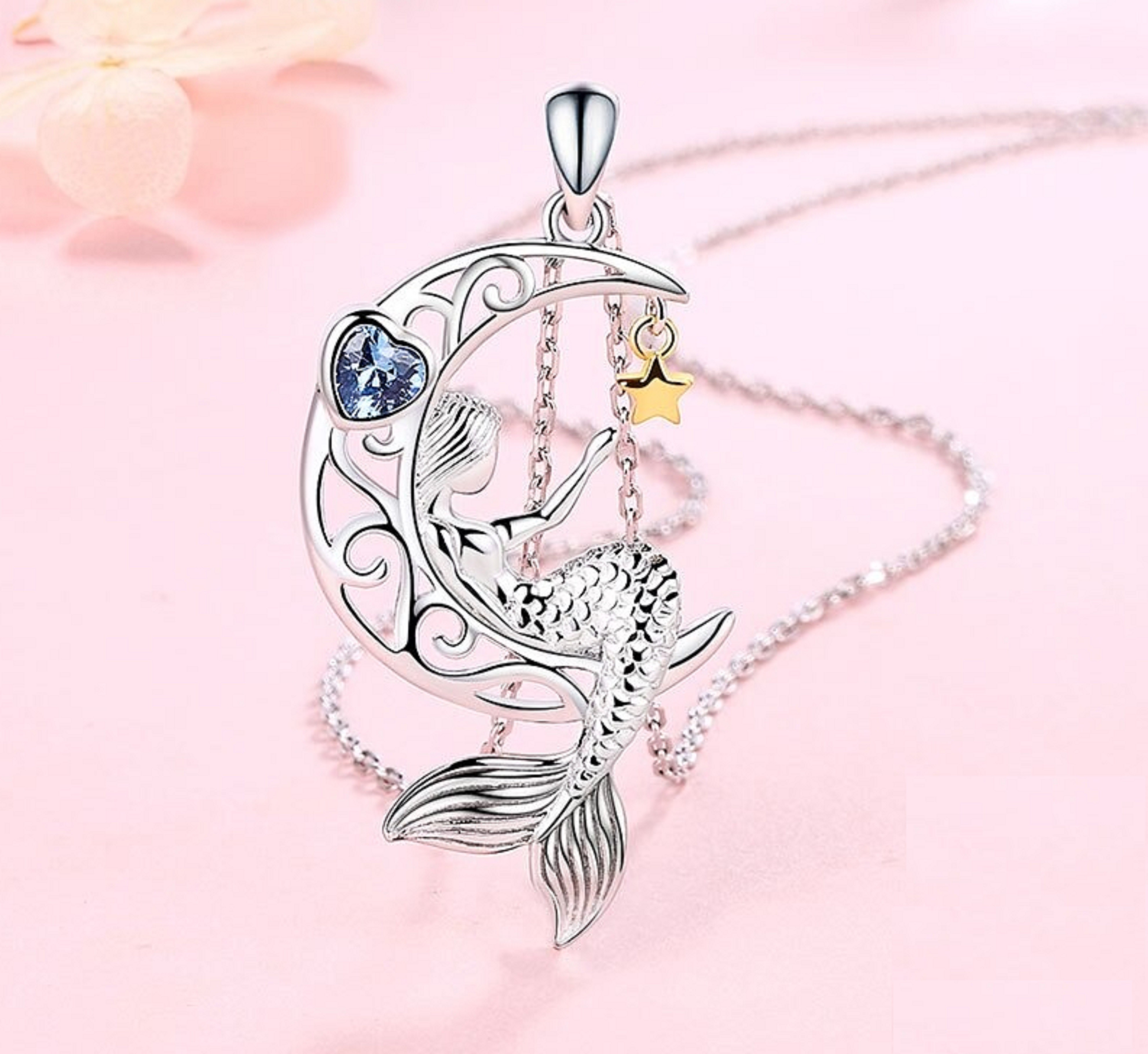 Dámsky náhrdelník s morskou pannou na mesiaci