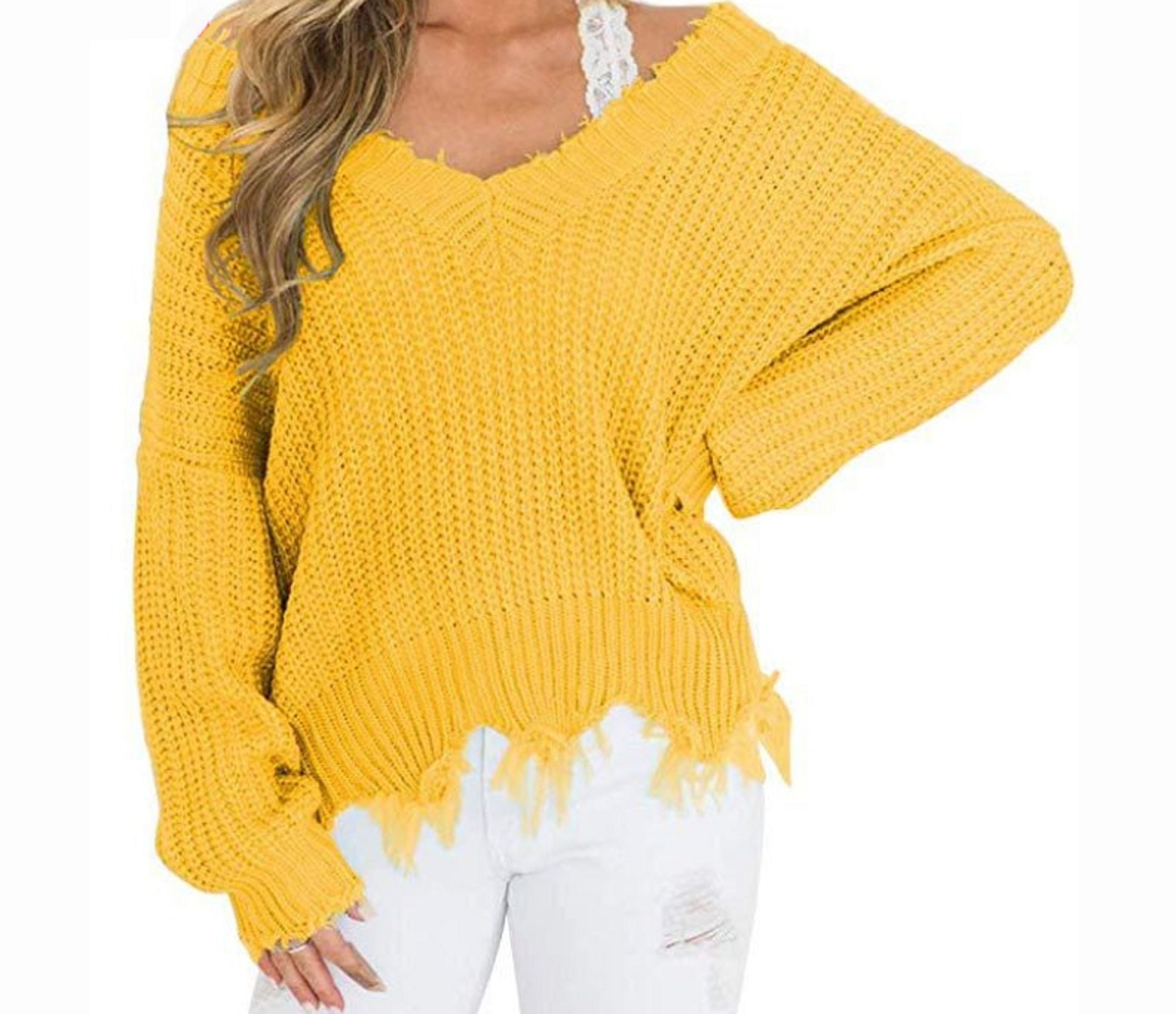 Dámsky pletený sveter s trhaním