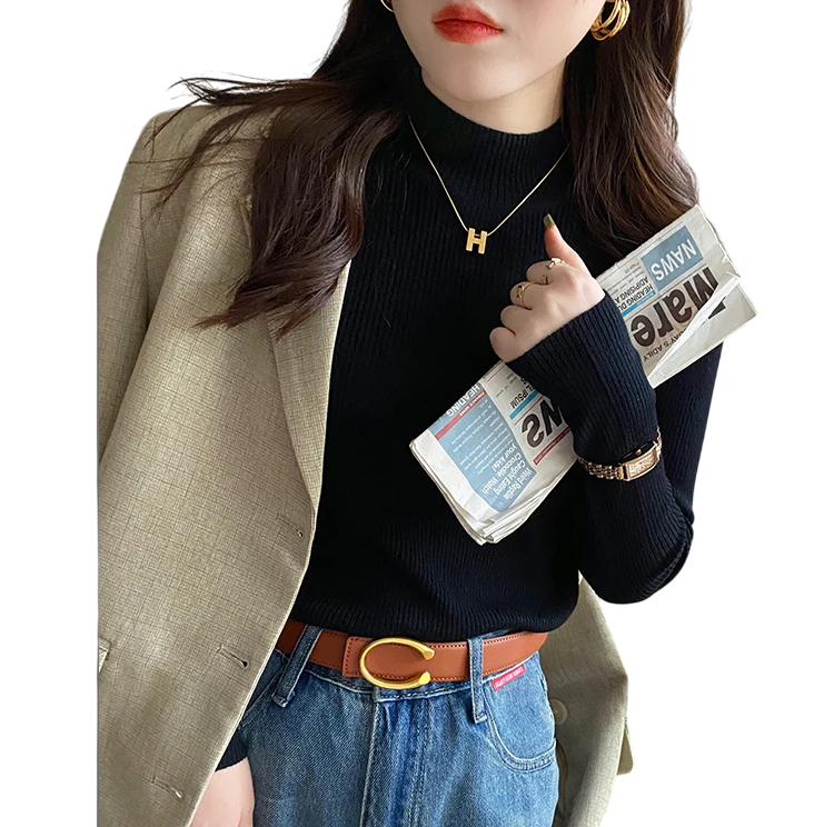 Dámsky rolákový sveter z polyesteru a bavlny Jednobarevný pletený sveter s dlhým rukávom Elegantný top s univerzálnou veľkosťou pre zimu