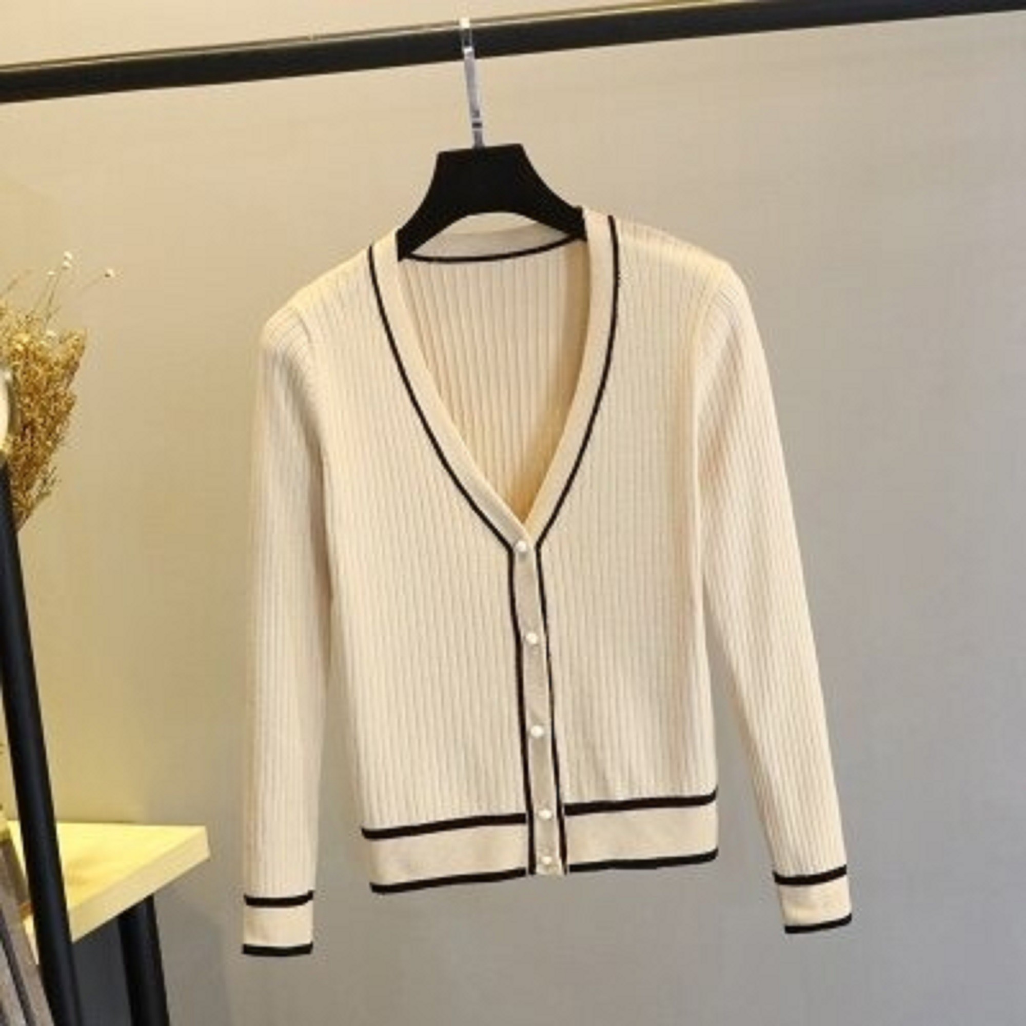Dámsky sveter s pruhmi a gombíky