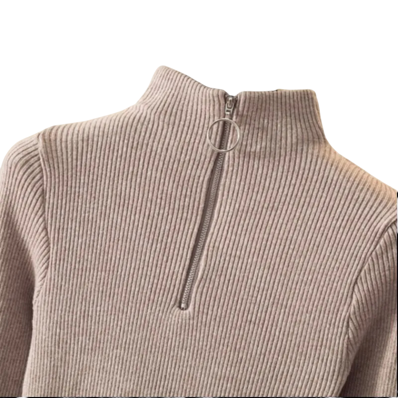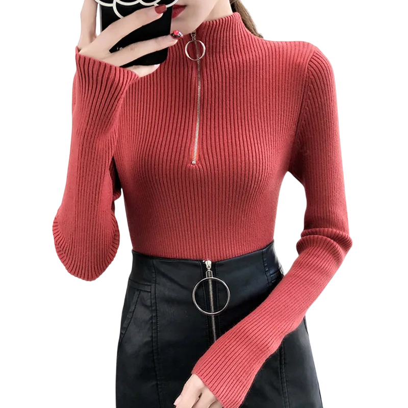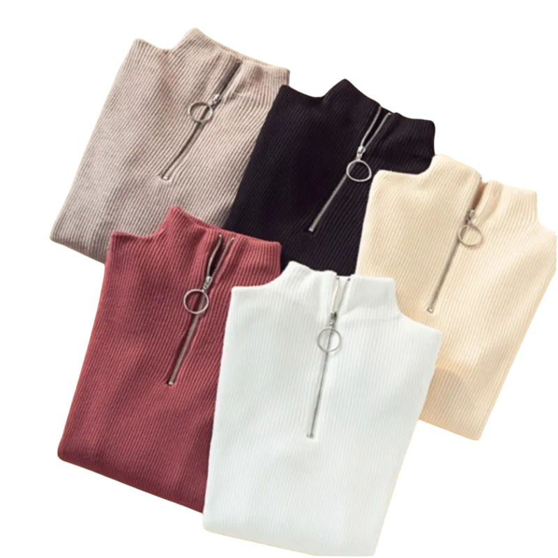 Dámsky sveter s rolákem a polovičným zipom Elegantný jednobarevný sveter z akrylu a bavlny s dlhým rukávom Pohodlný zimný top v rôznych farbách
