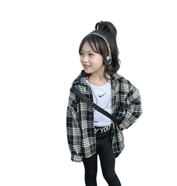 Detská čierna kockovaná košela s dlhým rukávom Bavlnené tričko s golierom a gombíkmi Štýlová košela pre dievčatá do školy aj na voľný čas