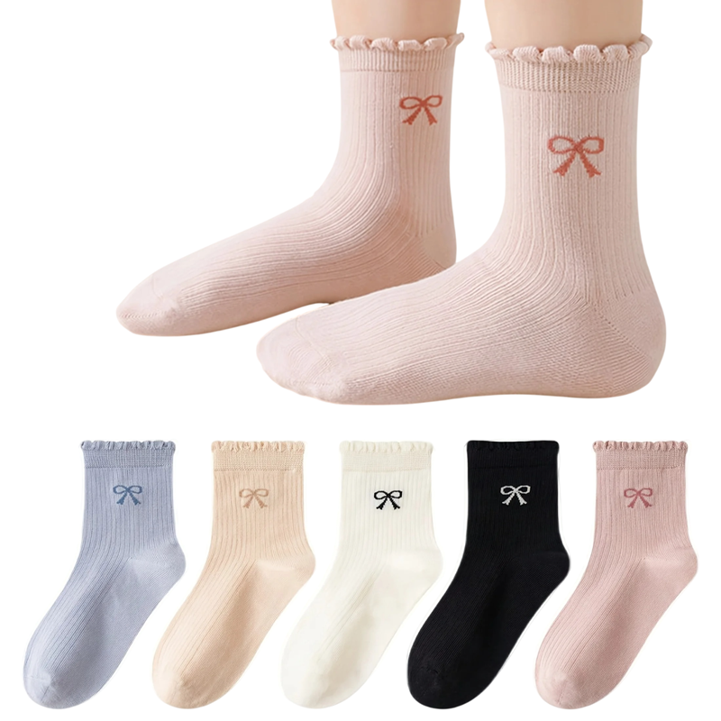 Detské ponožky sú dôležitou súčasťou každodenného oblečenia a mali by poskytovať pohodlie aj pri celodennom nosení. Táto sada ponúka viac párov ponožiek, ktoré je možné ľahko striedať počas bežného používania. Roztomilý motív mašličiek dodáva ponožkám štýlový a hravý vzhľad. Vďaka elastickému materiálu sa ponožky dobre prispôsobia detskej nohe a zaisťujú komfort pri každodennom nosení. Praktické balenie je vhodné pre bežné používanie doma, v škole aj pri rôznych aktivitách.