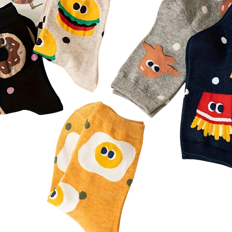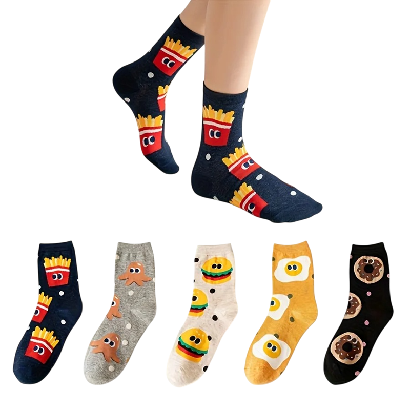 Detské unisex ponožky 5 párov Farebné ponožky s motívmi jedál Polyester elastan Elastické pohodlné ponožky pre deti