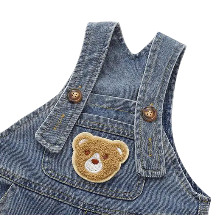 Dlhé nohavice zabezpečujú dostatočné krytie a komfort počas chladnejších jarných a jesenných dní. Overal má štýlový džínový vzhľad, ktorý sa skvele kombinuje s tričkami, mikinami či svetrami. Motív medvedíka dodáva celkovému dizajnu pôvab a detskú hravosť. Tento kúsok je vhodný na každodenné nosenie, rodinné výlety, fotenie aj spoločenské príležitosti. Materiál sa ľahko perie, rýchlo schne a udržuje tvar aj farbu aj po opakovanom praní.