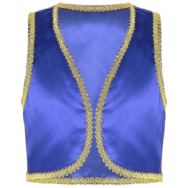 • Design: otvorená džinová vesta so zlatým lemom pre autentický vzhľad arabského princa
