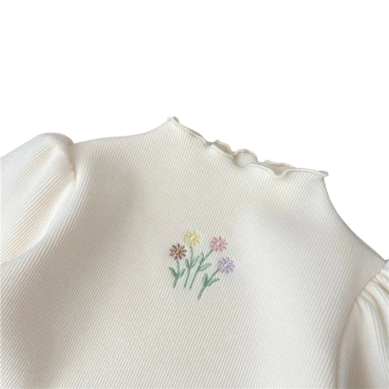 Detský zimný teplý pletený sveter Zahuštený top s naberanými rukávmi a kvetinovou výšivkou Elegantné detské tričko na jeseň a zimu Rôzne farby
