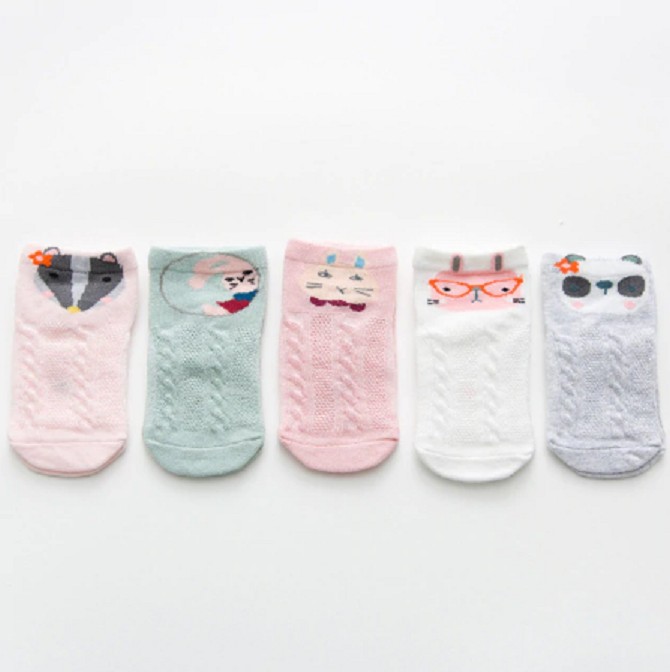 Dievčenské členkové ponožky so zvieratkami - 5 párov