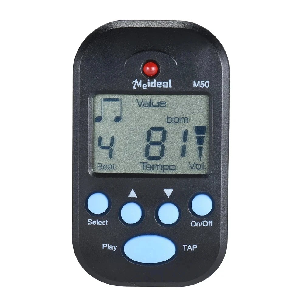 Kompaktný digitálny metronóm s LCD displejom, funkciou TAP, 0–9 taktmi a tempom 30–280 bpm. Jednoduché ovládanie, klip, otvor na šnúrku a výstup na slúchadlá. Celý popis