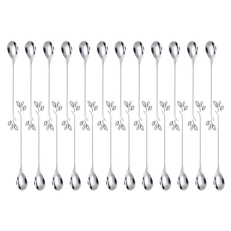 Dlhá čajová lyžička z nehrdzavejúcej ocele Dekoratívna listová rukoväť Dezertné lyžičky na kávu čaj zmrzlinu ovocie Elegantné príbory 24 ks