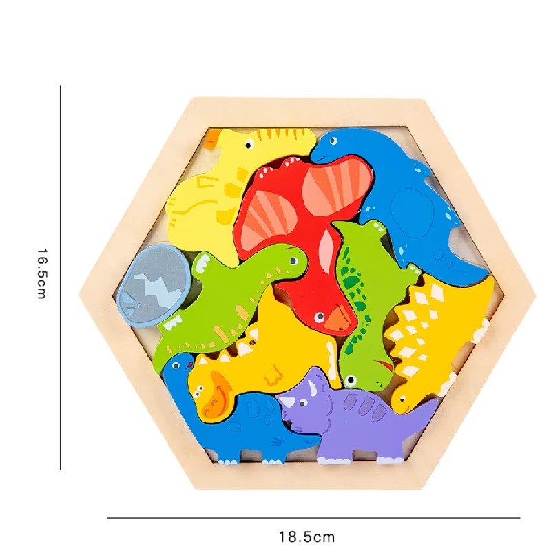 Malí objavitelia si zamilujú toto farebné drevené puzzle s dinosaurami, ktoré v sebe spája kreativitu, poznanie a zábavu. Pri skladaní sa deti zoznamujú s rôznymi druhmi dinosaurov a zároveň rozvíjajú svoju motoriku, trpezlivosť a priestorovú predstavivosť. Vďaka 3D prevedeniu puzzle lepšie chápu tvary a logické súvislosti, čo podporuje ich mentálny rozvoj. Hračka je ideálna pre predškolské deti, ktoré sa učia vnímať svet hmatom aj zrakom. Pevné drevené dieliky sa dobre držia v malých rukách a zvládnu aj časté používanie.
