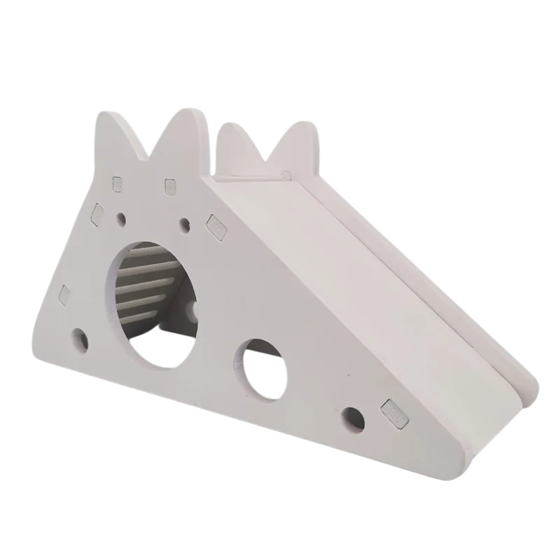 Tento roztomilý domček poskytne tvojmu miláčikovi bezpečné útočisko aj priestor na hru. Jeho praktický dizajn umožňuje jednoduché umiestnenie do klietky alebo výbehu a vďaka hladkému povrchu sa jednoducho čistí. Prírodné drevo prispieva k lepšej hygiene aj dlhé životnosti výrobku. Šmykľavka zvyšuje atraktivitu domčeka a prináša zvieratku zábavu a pohyb, čo je dôležité pre jeho zdravie a psychickú pohodu. Biely drevený domček pre hlodavce je tak nielen funkčný, ale aj dekoratívny doplnok do každej klietky.