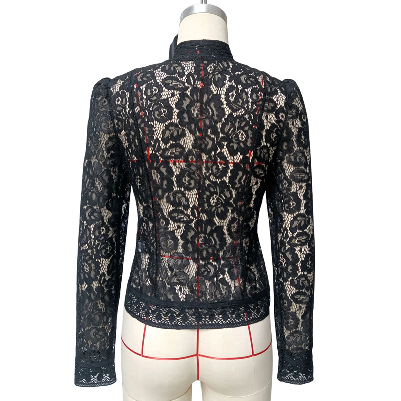 Elegantná dámska krajková košela je ideálnou voľbou pre ženy, ktoré ocenia kombináciu ženské elegancie, jemnosti a pohodlia. Vyrobená z kvalitného ľahko priesvitného polyesterového materiálu, ktorý je príjemný na dotyk a poskytuje elegantný vzhľad pri každej príležitosti. Vďaka voľnému strihu sa košela príjemne nosí a ľahko kombinuje s rôznymi kusmi oblečenia. Krajkový dizajn dodáva jedinečný pôvab a romantický nádych, zatiaľ čo límec a zapínanie na gombíky podčiarkujú jej klasický štýl. Dostupná je v niekoľkých módnych jednobarevných odtieňoch, ktoré sa hodia ako pre formálny, tak aj neformálny outfit.