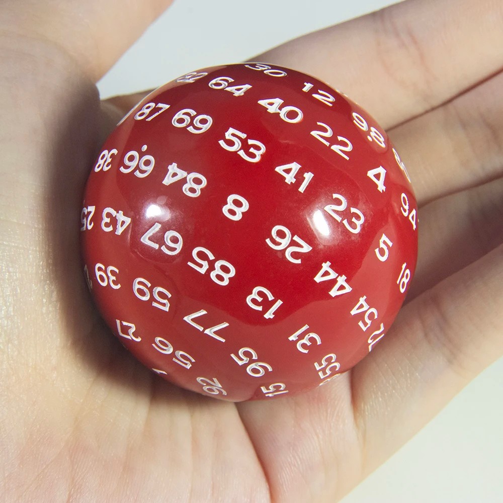 Hracia kocka D100 je praktický a výrazný herný doplnok určený pre stolné hry, RPG systémy a hry na hrdinov, kde sa pracuje s percentuálnymi hodmi a náhodnými udalosťami. Vďaka stostennej konštrukcii D100 umožňuje generovať hodnoty od 1 do 100 jedným hodom, čo zjednodušuje herné mechaniky a zrýchľuje priebeh hry. Kocka má veľkosť 4,8 cm, vďaka čomu je dobre čitateľná, ľahko uchopiteľná a stabilná pri hode na hernej ploche. Vyrobená je z akrylového materiálu, ktorý kombinuje pevnosť, hladký povrch a estetický vzhľad. K dispozícii je vyhotovenie v rôznych farbách, takže si každý hráč môže vybrať variantu zodpovedajúcu jeho hernej výbave.