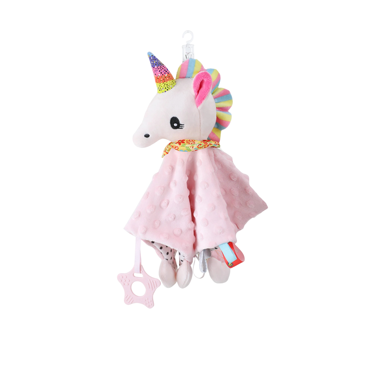 Úvodná strana Úvodná strana Všetko pre deti Hračky pre deti Hrkálky a hryzátka pre bábätká Jednorožec detské chrastítko s hryzátkom a háčikom na zavesenie, rozmer 28x28 cm, ideálne na upokojenie a rozvoj zmyslov