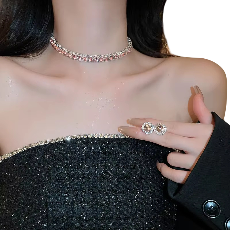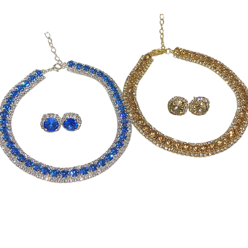 Krištáľový náhrdelník 42 cm a náušnice 1.4 cm Luxusná sada šperkov pre ženy Svadobné párty doplnky Zinková zliatina