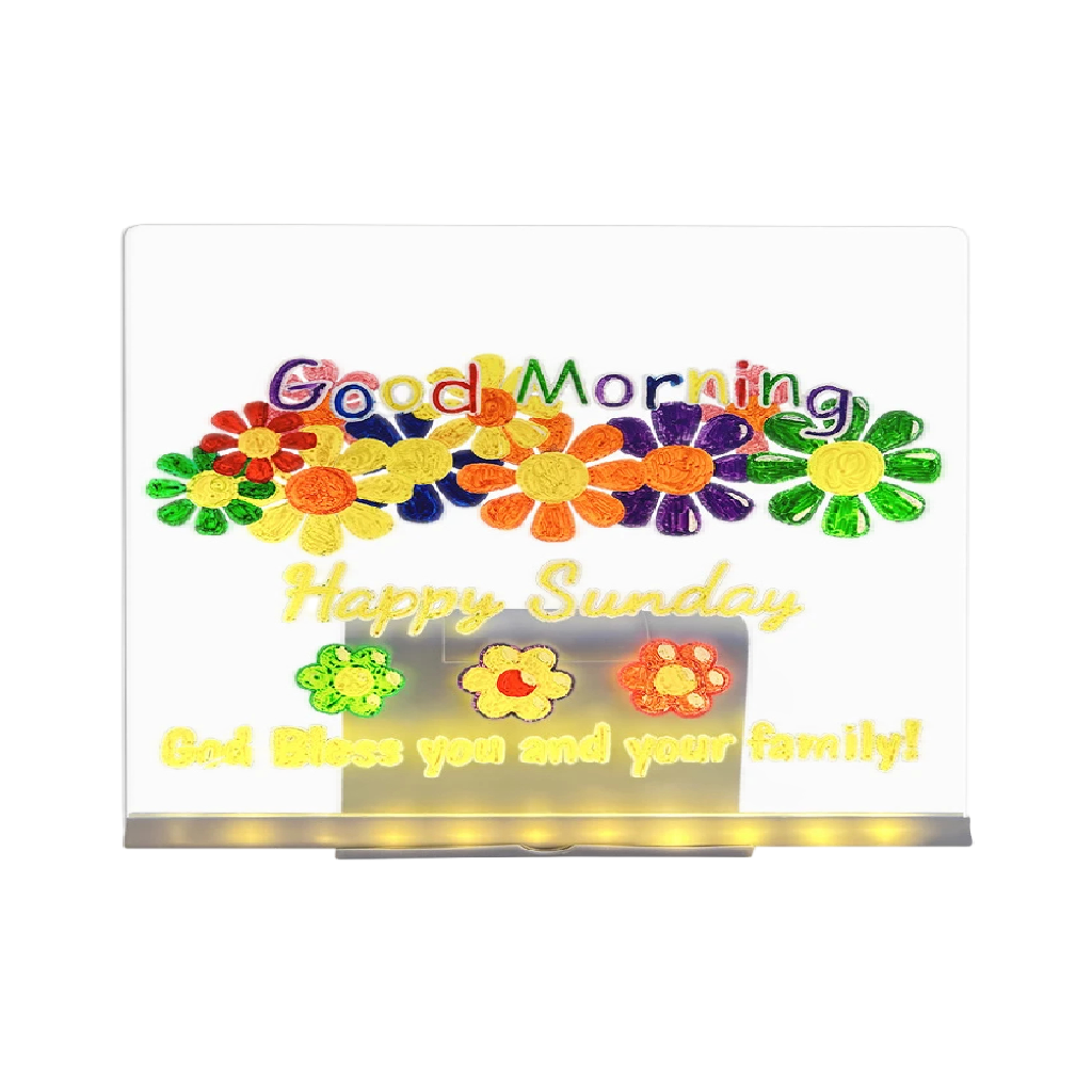 Moderná maľovacia tabuľa je skvelým pomocníkom pre deti aj dospelých, ktorí radi kreslia, zapisujú poznámky alebo vytvárajú kreatívne návrhy. Vďaka kvalitnému akrylovému povrchu poskytuje jasné a výrazné zobrazenie kresby aj textu. Praktické LED podsvietenie dodáva kresbám zaujímavý vizuálny efekt a zvyšuje ich čitateľnosť. Tabuľa je ideálna na domáce použitie, do školy, kancelárie alebo na kreatívne aktivity. Jednoduché napájanie pomocou USB umožňuje pohodlné používanie takmer kdekoľvek.