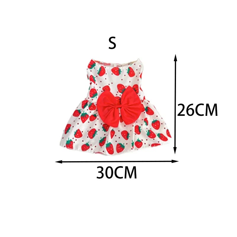 Letné šaty pre psov Veľkosť S 30 x 26 cm Roztomilé šaty so vzorom jahôd a červenou mašľou Elegantný oblečok pre malé psy Ľahký priedušný outfit